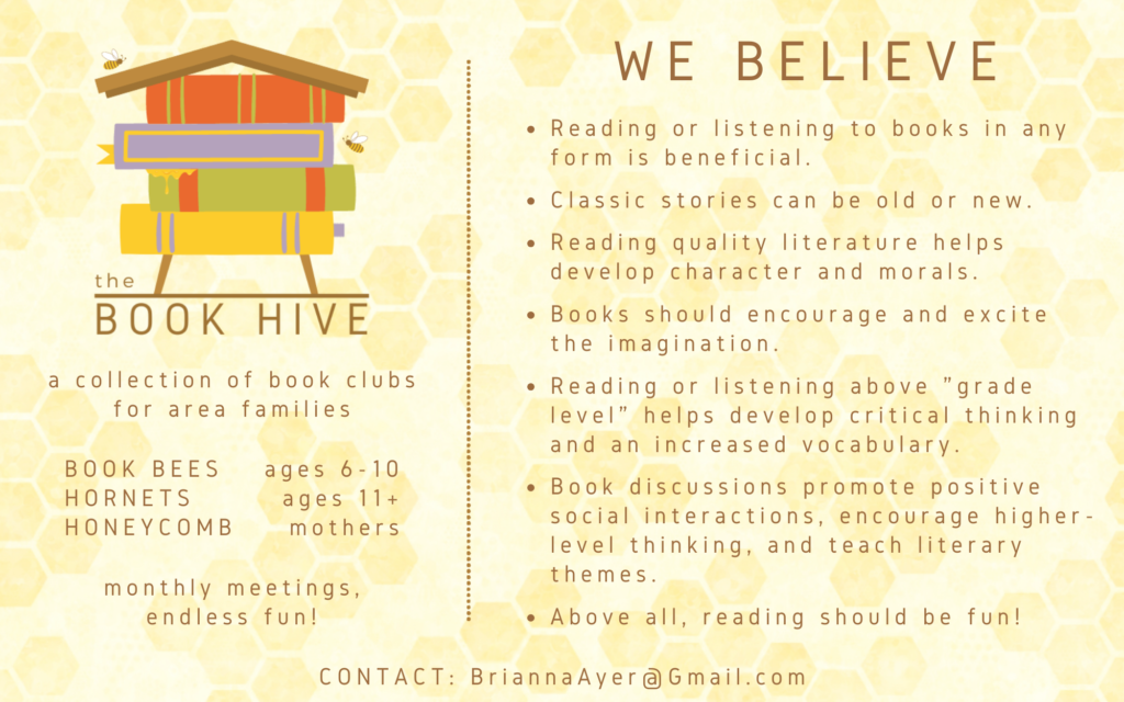 BRIANNA: This is the first year of The Book Hive as a homeschool book club. My children (14, 12, 9) and I love reading and have found stories to be really bonding and helpful in developing morals and character. I also have a child that did not enjoy reading, and I wanted to create an atmosphere that made books come to life, be exciting, and ignite passion that could be shared among friends. That is why my kids, and I created The Book Hive to be an interactive and fun experience. It truly has grown and become an amazing homeschool community. We have between 40-50 kids from ages 5-15 who participate in two different groups. Our older group, the Hornets, read A Long Walk to Water for their monthly reading. Our younger group, The Book Bees, read A Water Princess at their meeting in May.
